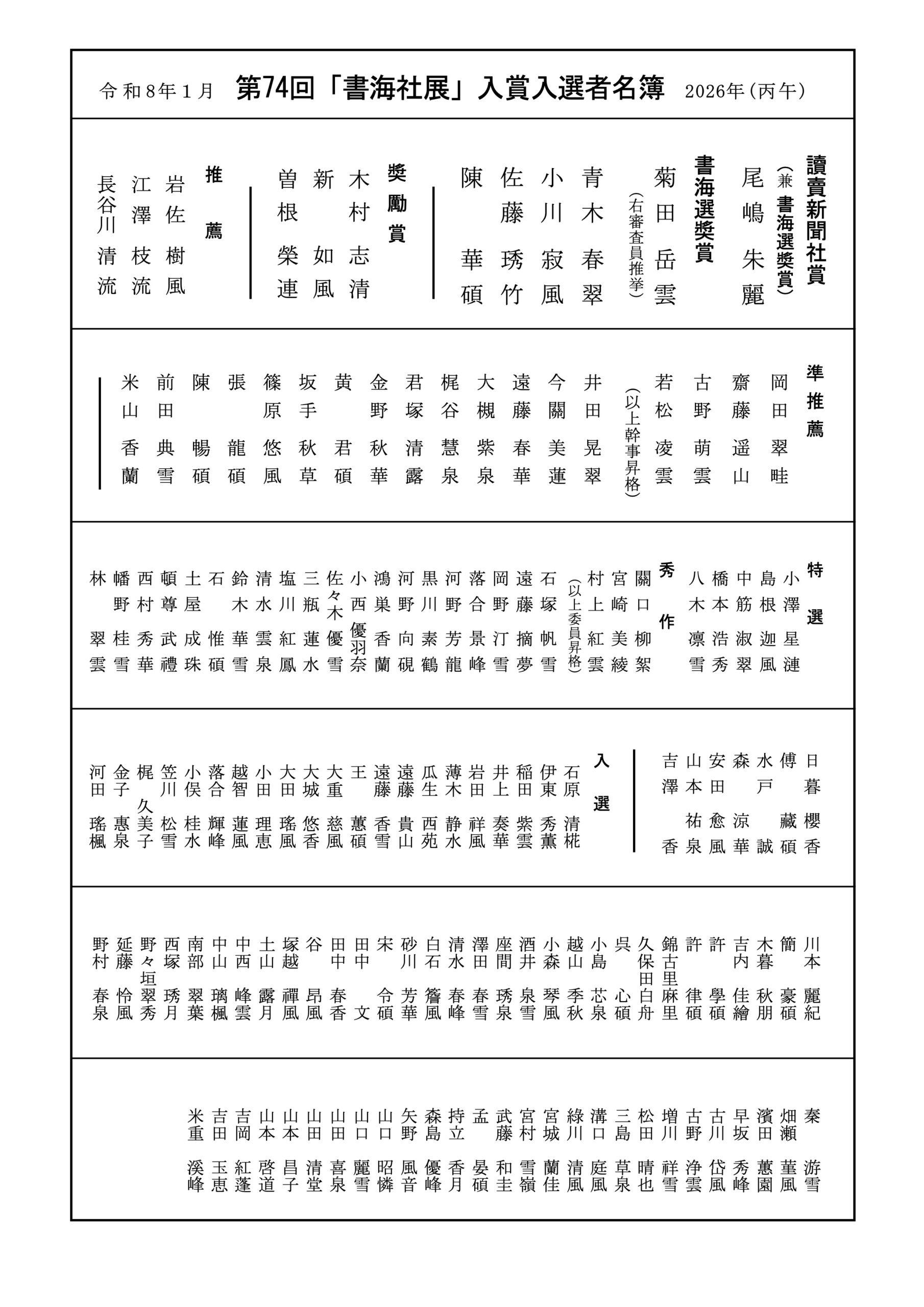 第74回 書海社展 入賞入選者